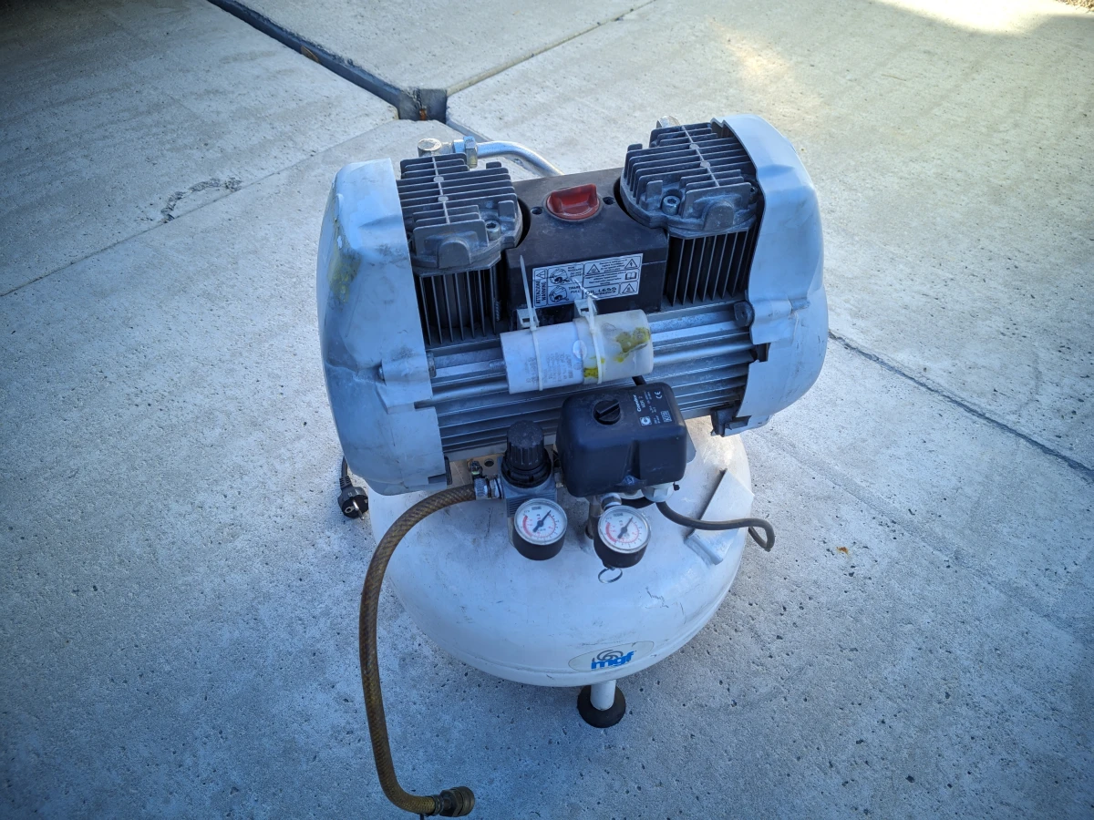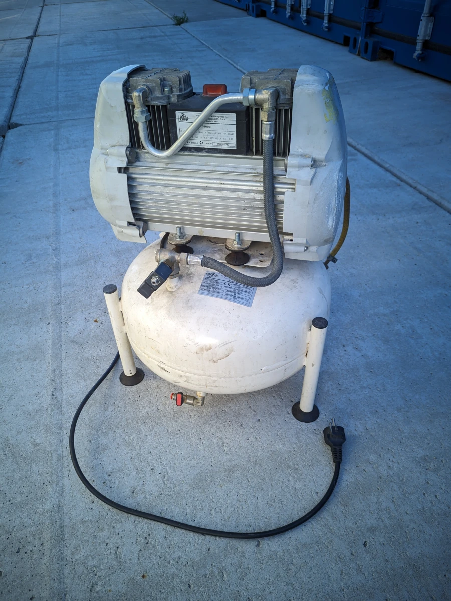 Używana sprężarka stomatologiczna mgf 24/10. Urządzenie stoi nieużywane ok 10 lat. Z tego co pamiętam były wymiane te blaszki co są na ostatnim zdjęciu, ale potem już nie wróciła na stanowisko. Nie mam możliwość podpięcia do zasilania w miejscu w którym obecnie przebywa. Odbiór osobisty, ew mogę dostarczyć.